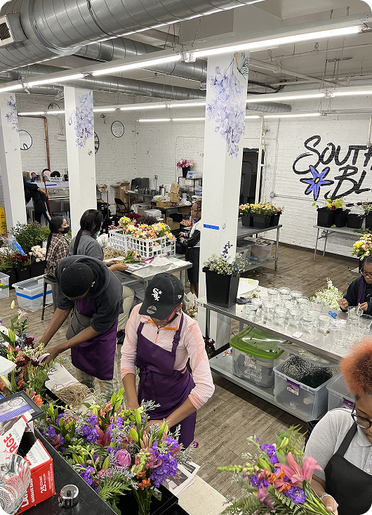 Southside Blooms is a nonprofit flower shop that creates jobs for youth and converts vacant lots into eco-friendly flower farms in Chicago’s South Side. Every bouquet helps grow opportunities and beauty in the community.