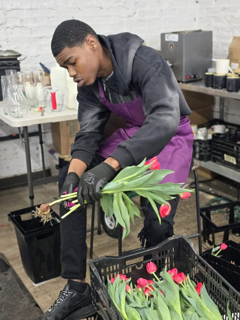 We prioritize youth empowerment through workforce development programs. Our K-8 environmental education program teaches urban farming, sustainability, and social enterprise. Our workforce development program trains young people ages 16-24 as flower farmers and florists.