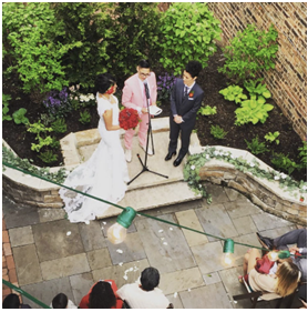 Our plan B is equally as beautiful with our outdoor garden enclosed by double peaked bell tents